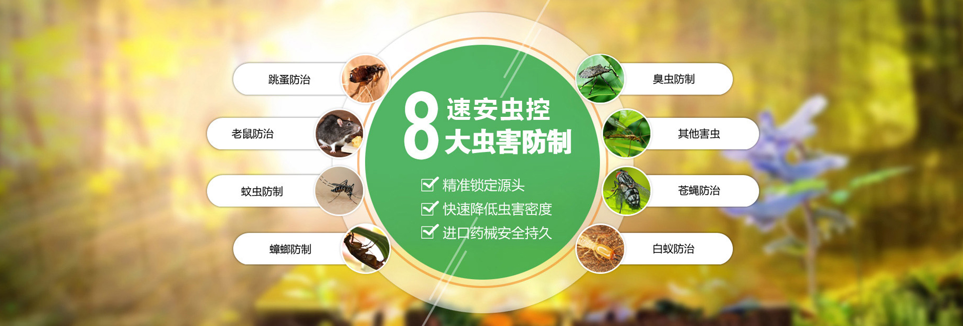 服務于為賓館飯店、餐飲業、食品加工業、建筑業、商場、超市、學校、工廠、醫院等單位和家庭提供鼠蟲害等有害生物防治。